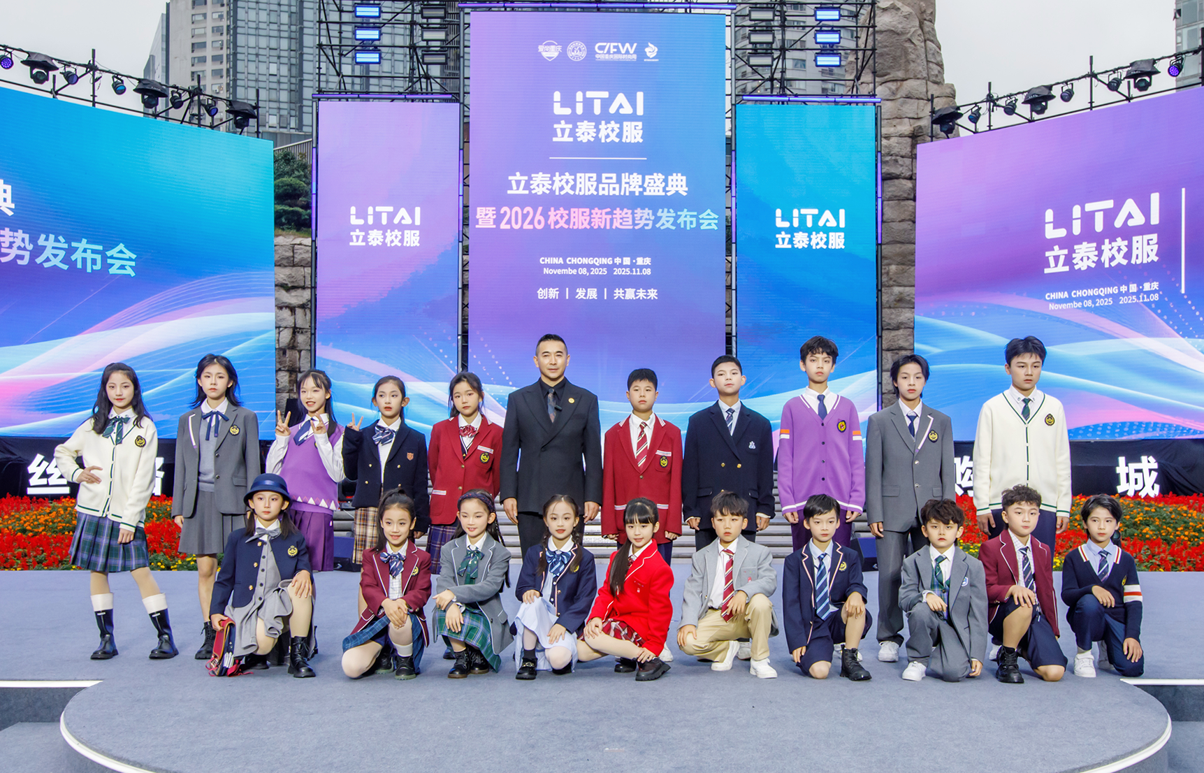 11月8日下午,重庆立泰服饰集团(下称“立泰集团”)校服品牌盛典暨2026校服新趋势发布会在重庆潮流地标观音桥圆满举办。这场集视觉盛宴、技术革新与合作共赢于一体的行业盛会,吸引了众多领导、来宾、媒体朋友、合作伙伴及广大群众齐聚一堂,共同见证中国校服行业标杆企业的全新发声与行业新趋势的重磅发布。